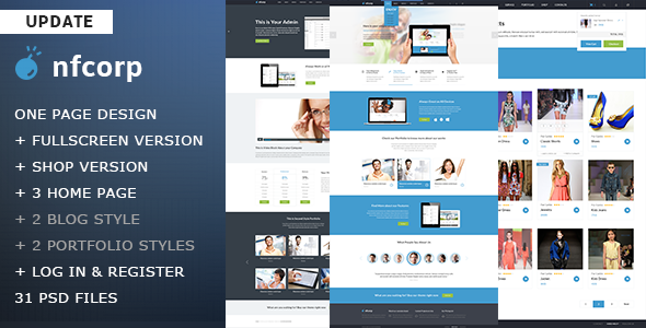 Nfcorp – modern PSD website template designed in Photoshop. PSD files are compatible with Adobe CS4 and later.